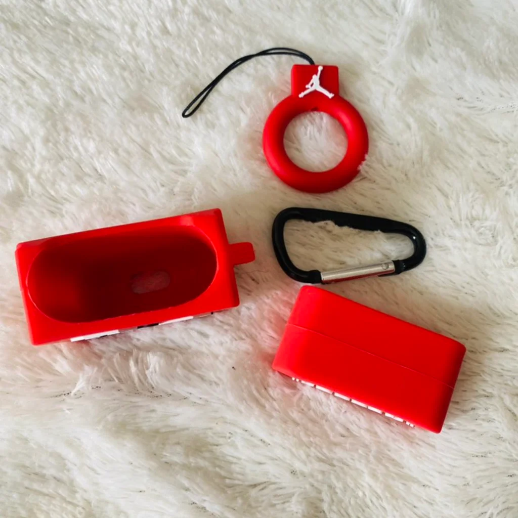 Stylish 3D silicone Air Jordan protective case for Apple AirPods gen 1/2. Comes with a matching Jordan charm.