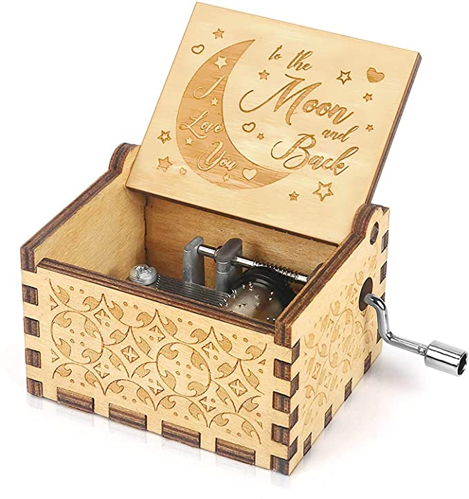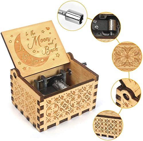 - ♬ Vintage design – This music box is woody. The exquisite surface carved by hand in imitation of ancient times brings you into a magic world.
