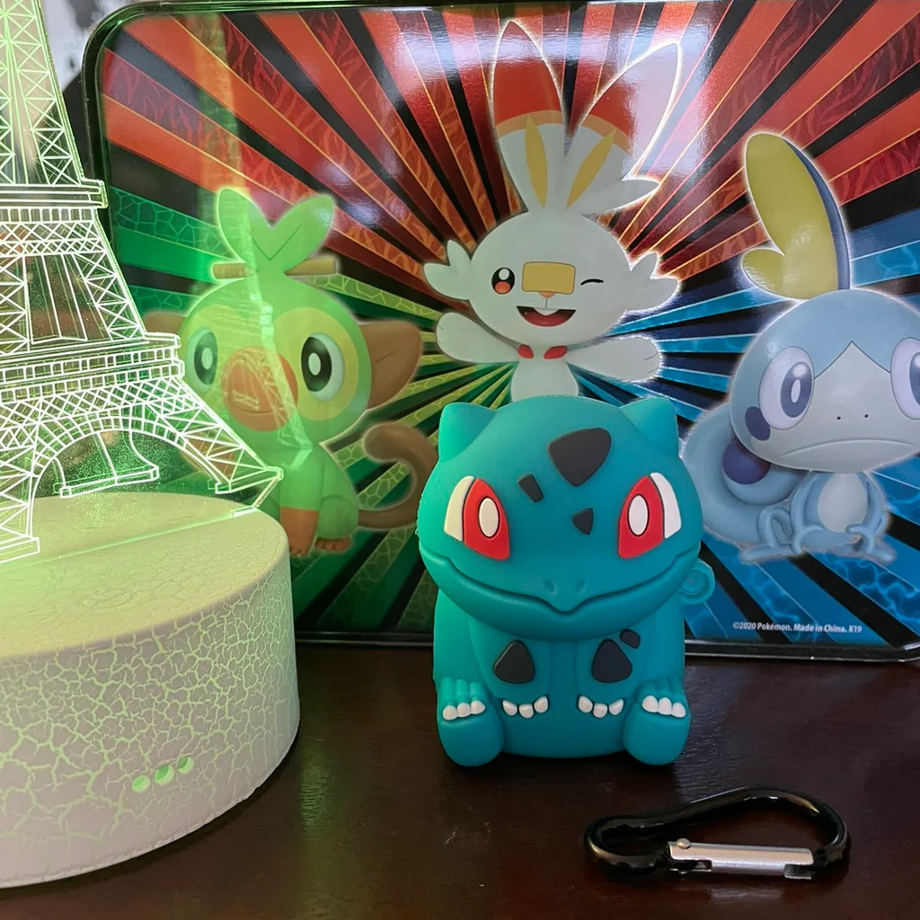 Made for Generation 1 & 2 airpods. These are NOT Airpod Pro Cases. View the airpods in the picture. Bring bulbasaur on the field to defend your Airpods. Material: Silicone Contents: Case for lid, Case for base, Keychain