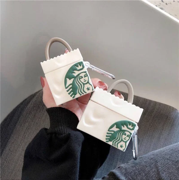 Starbucks Bag Airpod 1 2 Pro Case, Cool Cartoon Airpod Case, Airpod 1 2 Gen with Hook, Cute Starbucks lover Silicon Airpod Case