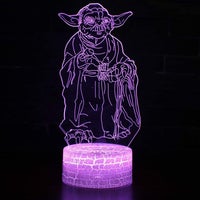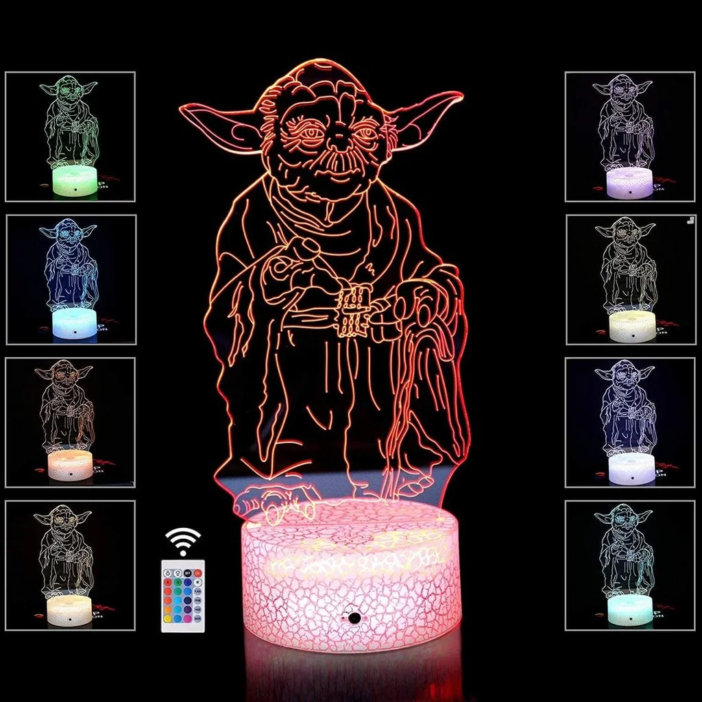 ✔️Every Yoda Star Wars night lamp can be used with the remote or touch as you please. Furthermore, we offer two types of bases Crack base or Black base both come with a remote controller and usb cable. You can also use batteries with our incredible night lamps. ✔️3D Visualization- This amazing lamp inconceivably worked by optical acrylic light guide plate engraving a variety of 2D graphics, 3D visual impact. Unique lighting effects amazing optical visual illusion home decor lamp, It makes your room more interesting. ✔️3D visual effect- Novelty 3D illusion night light has a nice hologram effect, and much better when in the dark. Great colors and awesome looking, it can be put in bedroom, child room, living room or birthday celebration as decorative light. ✔️16 colors change make more fun- 7 singel light and 1 automatic gradual changing to 8 models, really cool gift, comes with different styles which makes it more fun to play with, and you can pick your own color, your mood.